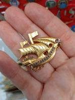 Кстати, вдогонку предыдущему посту. Хоть я и отношусь к б/у вещам с некоторой брезгливостью, но на днях заглянула в магазин-барахолку и не смогла пройти мимо значка-кораблика. Как по мне, так это и не значок, а полноценная металлическая брошка! И как увидела — сразу в голове мелькнула мысль, что кораблик ждал именно меня. Забрала, конечно. Тем более что и стоит вообще копейки. (ага, пока другие покупают золото-брильянты, Юля восхищается советским значком из нержавейки 😂 )